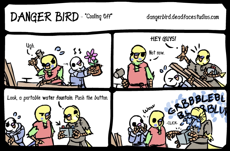 Dennis shows off his new super cool portable water fountain invention – a novel way for cooling off….or pressure washing your face?